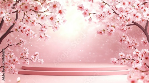 Fototapeta premium Spring background,Studio Room with 3D Podium Display with Cherry Blossoming...