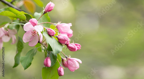© Marina, Obraz premium Spring background with apple tree flowers and copy space.
