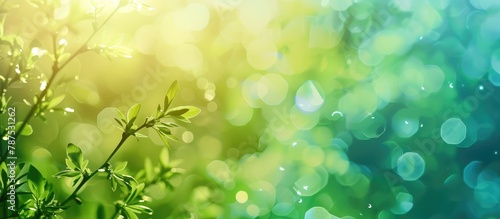 Fototapeta premium Spring background with blurred abstracts in green and blue hues.
