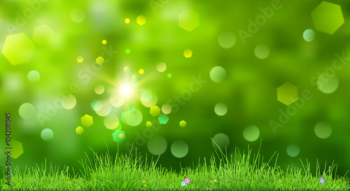 © Olga Moonlight, Fototapeta premium Spring background with green grass