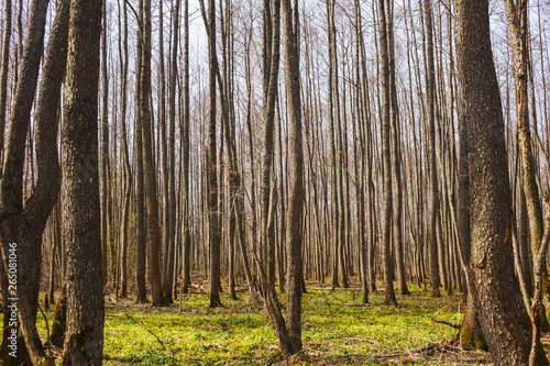 Fototapeta premium Spring bare forest. Many aspen tree trunks