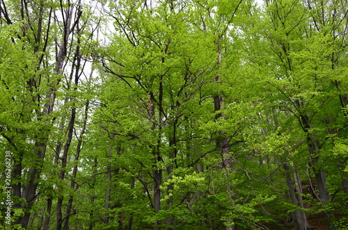 © maria, Obraz premium Spring beech forest with fresh light green foliage