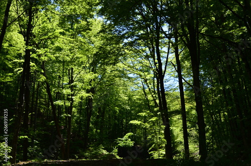 © maria, Obraz premium Spring beech forest with fresh light green foliage