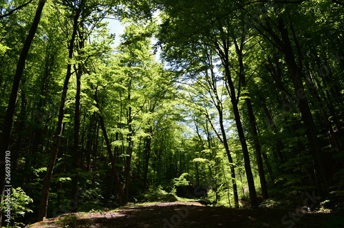 © maria, Obraz premium Spring beech forest with fresh light green foliage