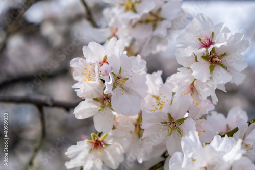 Fototapeta premium Spring blooming. Almond tree blossoming background