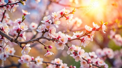 © beng, Fototapeta premium Spring blooming apricot tree reflected in natural background