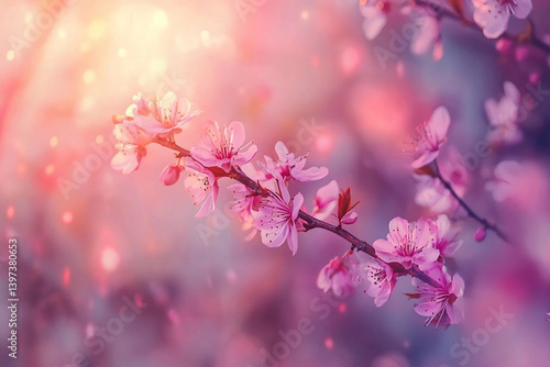 Obraz premium Spring Blooming Cherry Blossom Branch With Soft Pastel Background Generative...