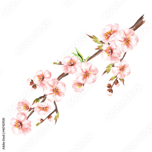 Obraz premium Spring blooming cherry branch, Watercolor hand drawn illustration isolated...