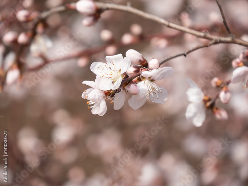 © Guiyi, Fototapeta premium Spring blooming plum blossoms cherry blossoms bees collecting nectar