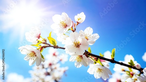 Fototapeta premium Spring Blooming - White Blossoms And Sunlight In The Sky