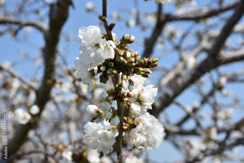 Obraz premium Spring blooms. Cherry tree in bloom. Closeup.