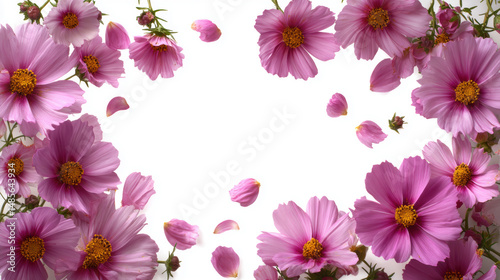Fototapeta premium Spring blooms surround a blank space creating a vibrant and colorful floral border with falling petals