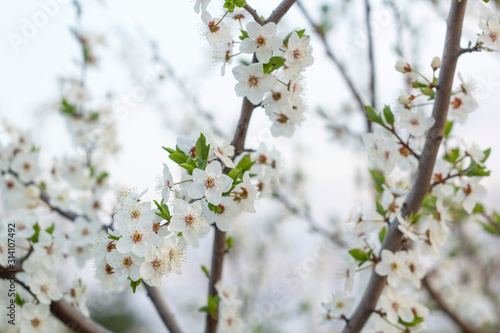 © Ivanna, Fototapeta premium Spring blossom background. Beautiful nature scene with blooming tree.