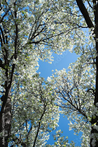 © Volodymyr, Fototapeta premium Spring blossom background. Blossoming tree branch with white flowers.