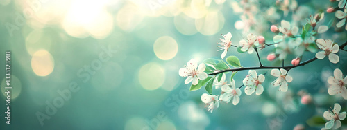 Fototapeta premium "Spring Blossom Branch with Bokeh Light – Beautiful Floral Nature Background"