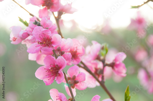 Obraz premium Spring blossom, pink flowers, sunrise in the morning