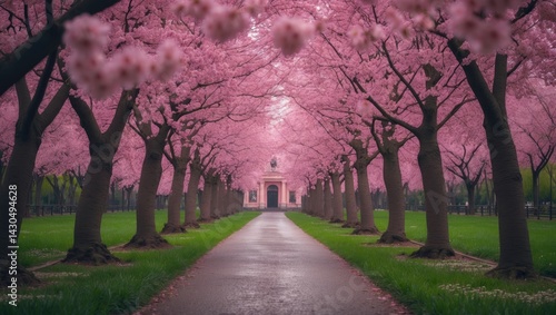 © AbstractAI, Obraz premium Spring blossom scene featuring pink cherry tree flowers
