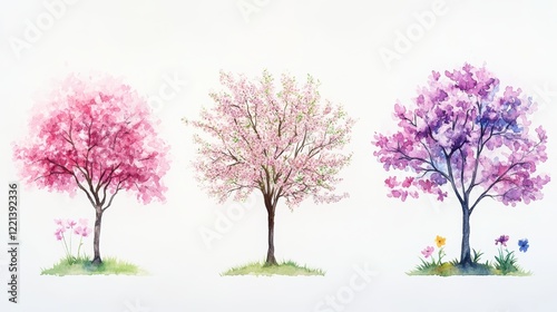 © Gro, Obraz premium Spring Blossom Tree Blooming Plants for Landscape Elevation and Section - Eco Environment Concept
