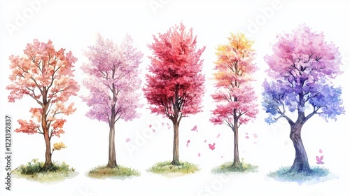 © Gro, Obraz premium Spring Blossom Tree Blooming Plants for Landscape Elevation and Section - Eco-Environment Concept
