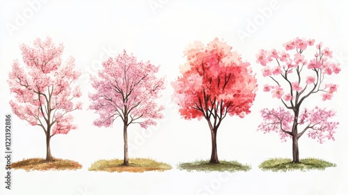 Fototapeta premium Spring Blossom Tree Blooming Plants for Landscape Elevation and Section Eco...