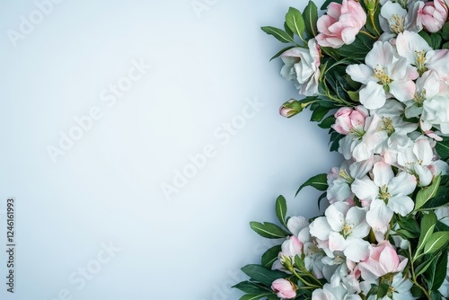 © photopixelstudio, Fototapeta premium Spring blossoms border, pastel background, blank space, floral design