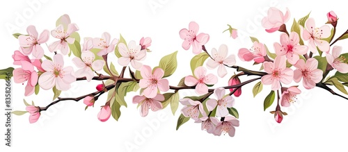 Fototapeta premium Spring blossoms on an apple tree with white petals, set against a backdrop...