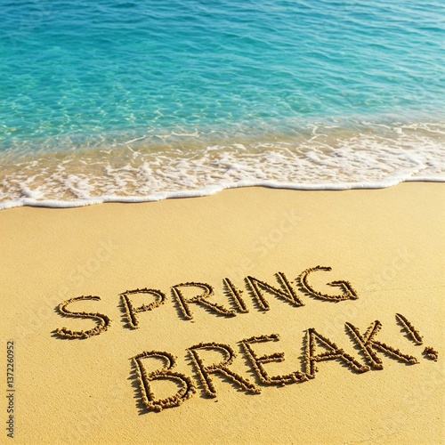 Fototapeta premium Spring Break Message Written in Sand on Tropical Beach