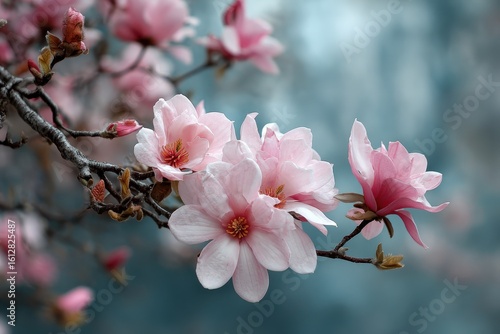 Obraz premium Spring brings vibrant pink flowers blooming on tree branches in a tranquil...