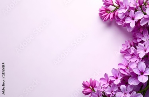 © Pavel, Fototapeta premium Spring card. Flowers located along the edge of a festive picture with an empty space for text for congratulations. Lilac.