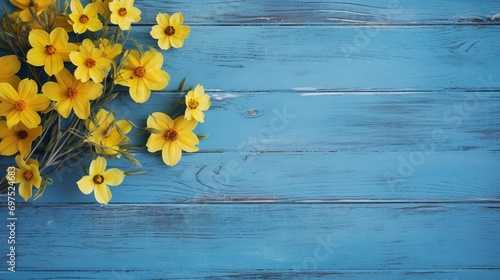 Fototapeta premium spring cherry blossom branches on turquoise blue background