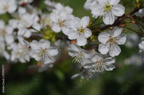 © chetverovod, Obraz premium Spring, cherry blossom, close up on green background.