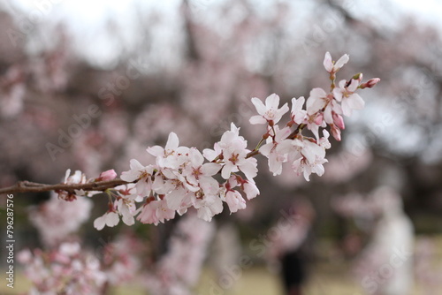 Fototapeta premium Spring cherry blossom sakura with blue sky in japan