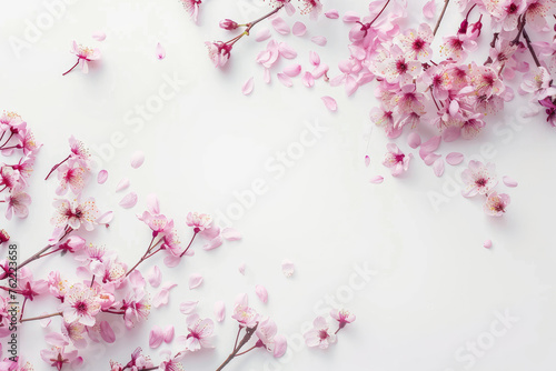 Fototapeta premium spring cherry blossoms on the left top view, copy space, white background