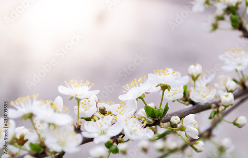 Obraz premium Spring cherry plum blossom close-up, background defocus