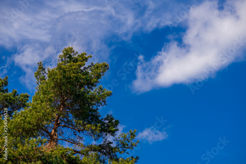 Obraz premium Spring coniferous forest sunny day blue sky