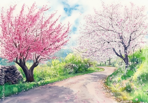 Fototapeta premium Spring Countryside Road Beneath Cherry Blossoms
