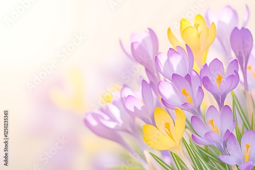 Naklejka premium Spring Crocus Blossoms, Soft Focus, Pastel Colors
