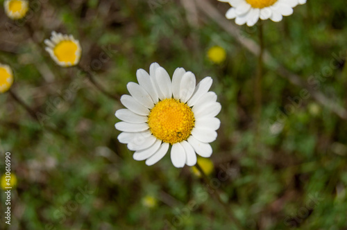 Fototapeta premium Spring daisy flower tree yellow white leaf green