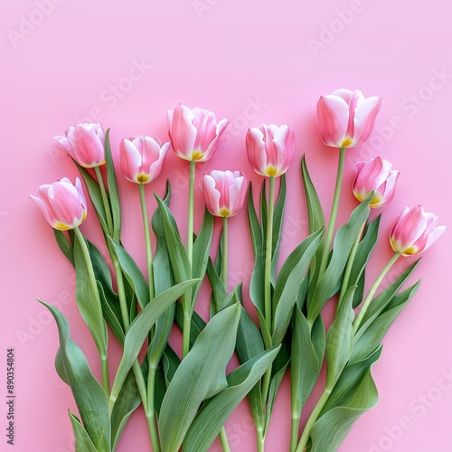 © BG_Illustrations, Fototapeta premium Spring Elegance Fresh Pink Tulips on Pastel Background