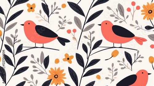 © JCreative, Fototapeta premium Spring Equinox day concept. Whimsical Springtime Floral and Avian with Playful Cartoon Elements