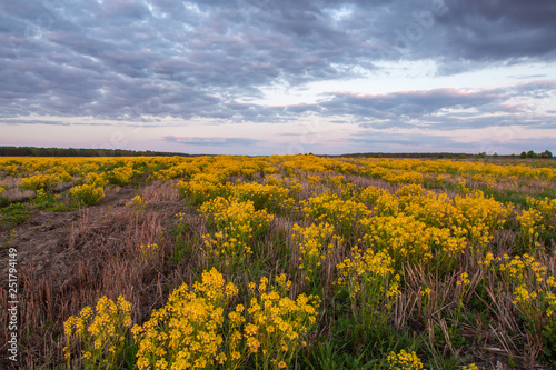 Fototapeta premium Spring field covered with lush yellow flowers