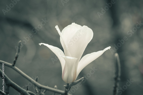 © julia_arda, Naklejka premium Spring floral background with white magnolia flowers.