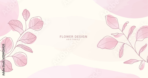 Fototapeta premium Spring flower abstract clipart background. Flowers and leaves in pink watercolor drawing for greetings, wishes, invitation and wallpaper design. Vector illustration spring abstract card design.