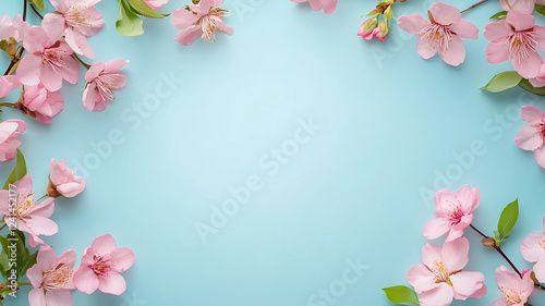 © Thy, Fototapeta premium Spring flower frame on blue background