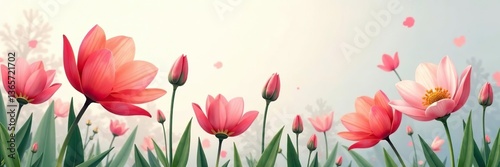 Fototapeta premium Spring flower illustration with vibrant colors, delicate petals, and fresh green stems, pattern, seasonal