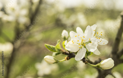 © ovcerleonid, Fototapeta premium Spring flower to cherries in garden