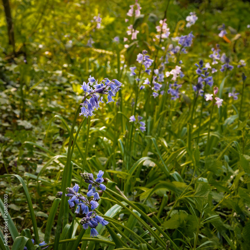 Fototapeta premium Spring flowering blue Spanish bluebells ( Hyacinthoides hispanica) an English woodland setting.