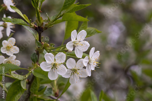 Fototapeta premium Spring flowering cherry with white flowers close-up