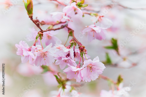 Fototapeta premium Spring flowering of trees on a blurred background.