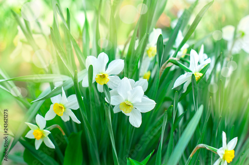 Fototapeta premium spring flowers, daffodils in the garden, spring background or calendar